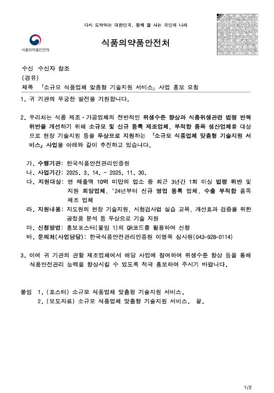 ¡¸¼Ò±Ô¸ð ½Äǰ¾÷ü ¸ÂÃãÇü ±â¼úÁö¿ø ¼­ºñ½º¡¹»ç¾÷ È«º¸ ¿äû (½Ä¾àó¡æÁöÀÚü)