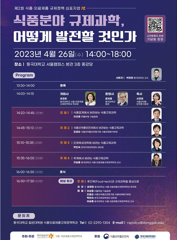 Á¦¸ñ [µ¿±¹´ëÇб³] ¡¸Á¦2ȸ ½Äǰ.ÀÇ·áÁ¦Ç° ±ÔÁ¦Á¤Ã¥ ½ÉÆ÷Áö¾ö¡¹ °³ÃÖ ¾È³»